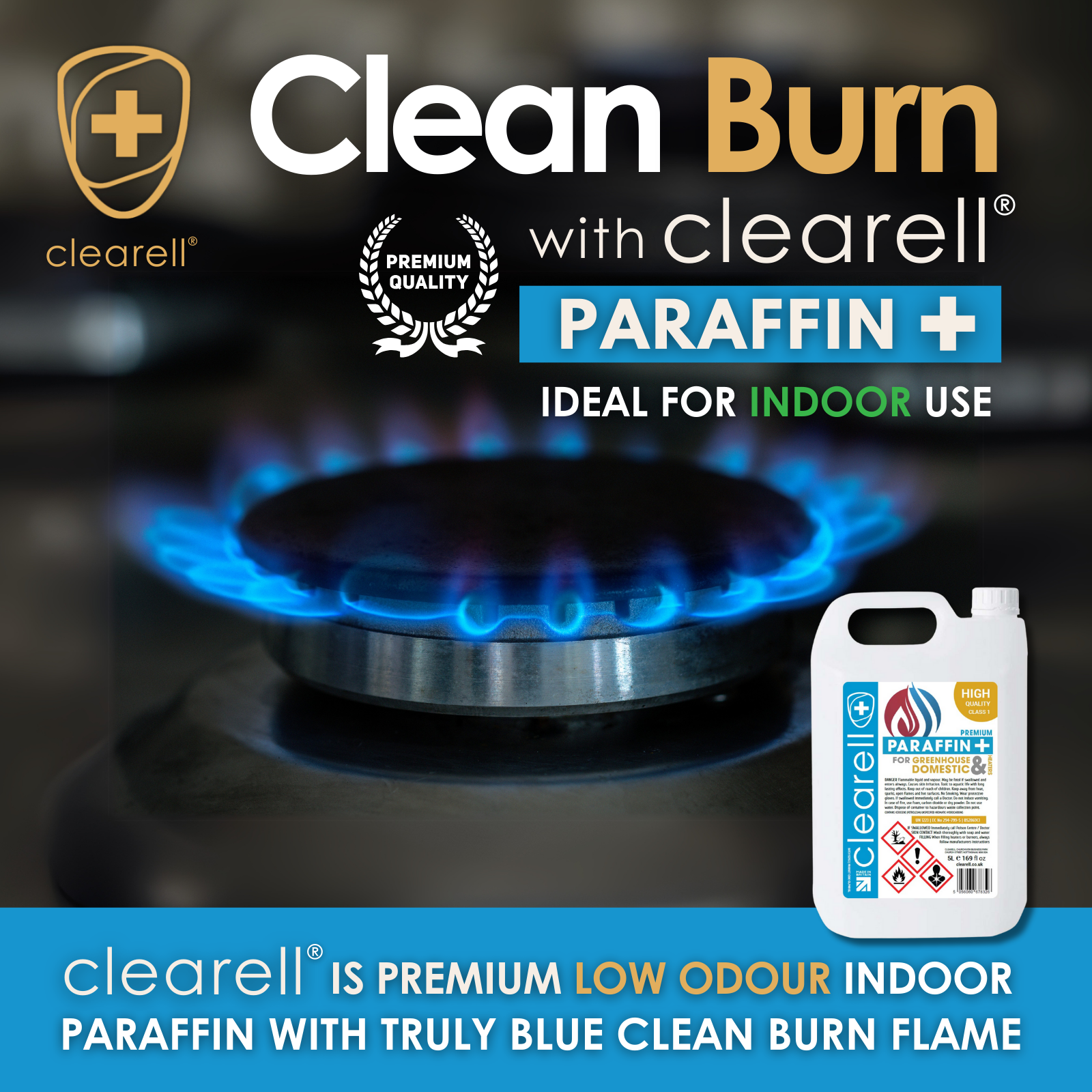 Clearell PARAFFIN+ Premium Indoor Clean-Burning Heating Oil in quantities of 4L, 10L, 16L, 20L, 40L, 80L, 100L, 200L