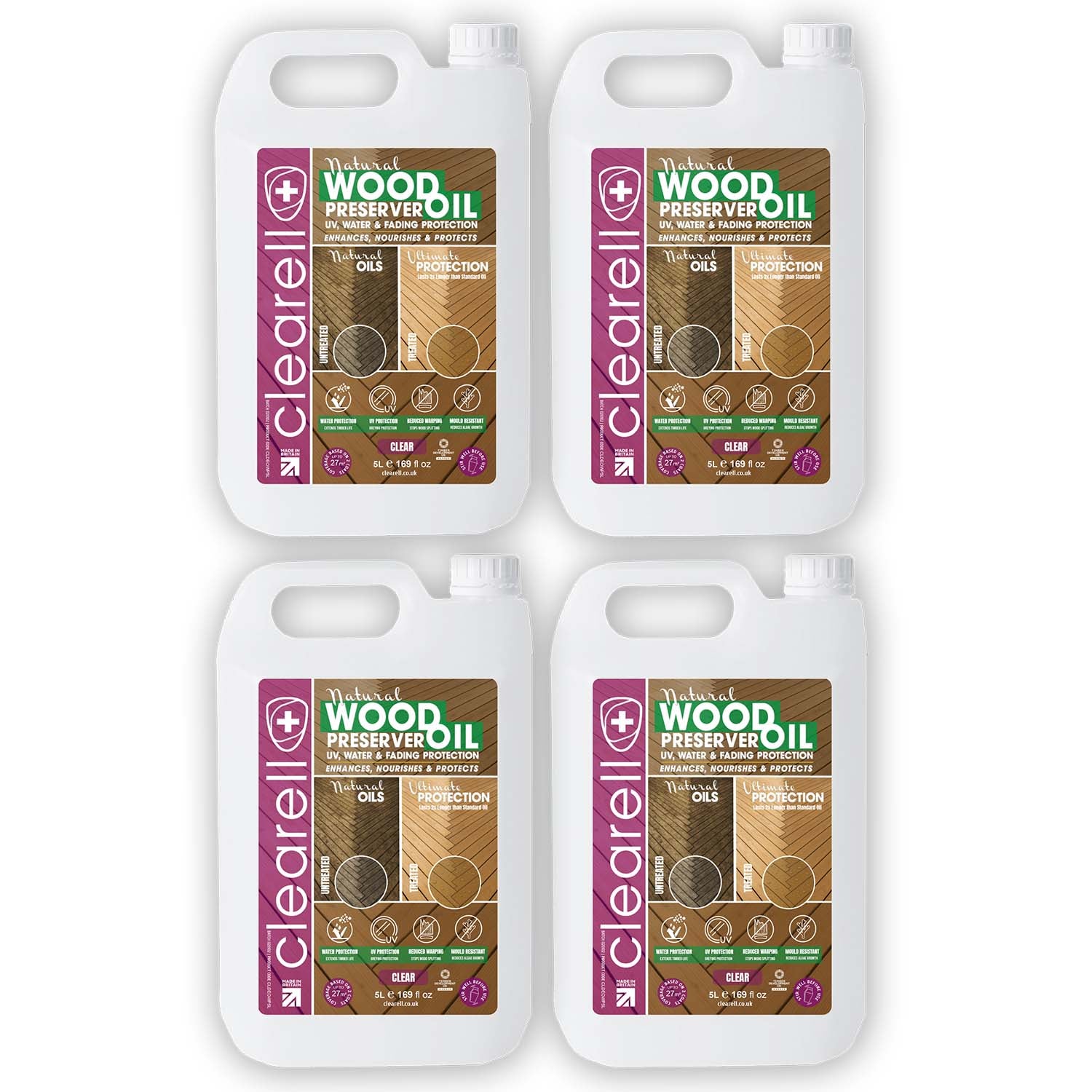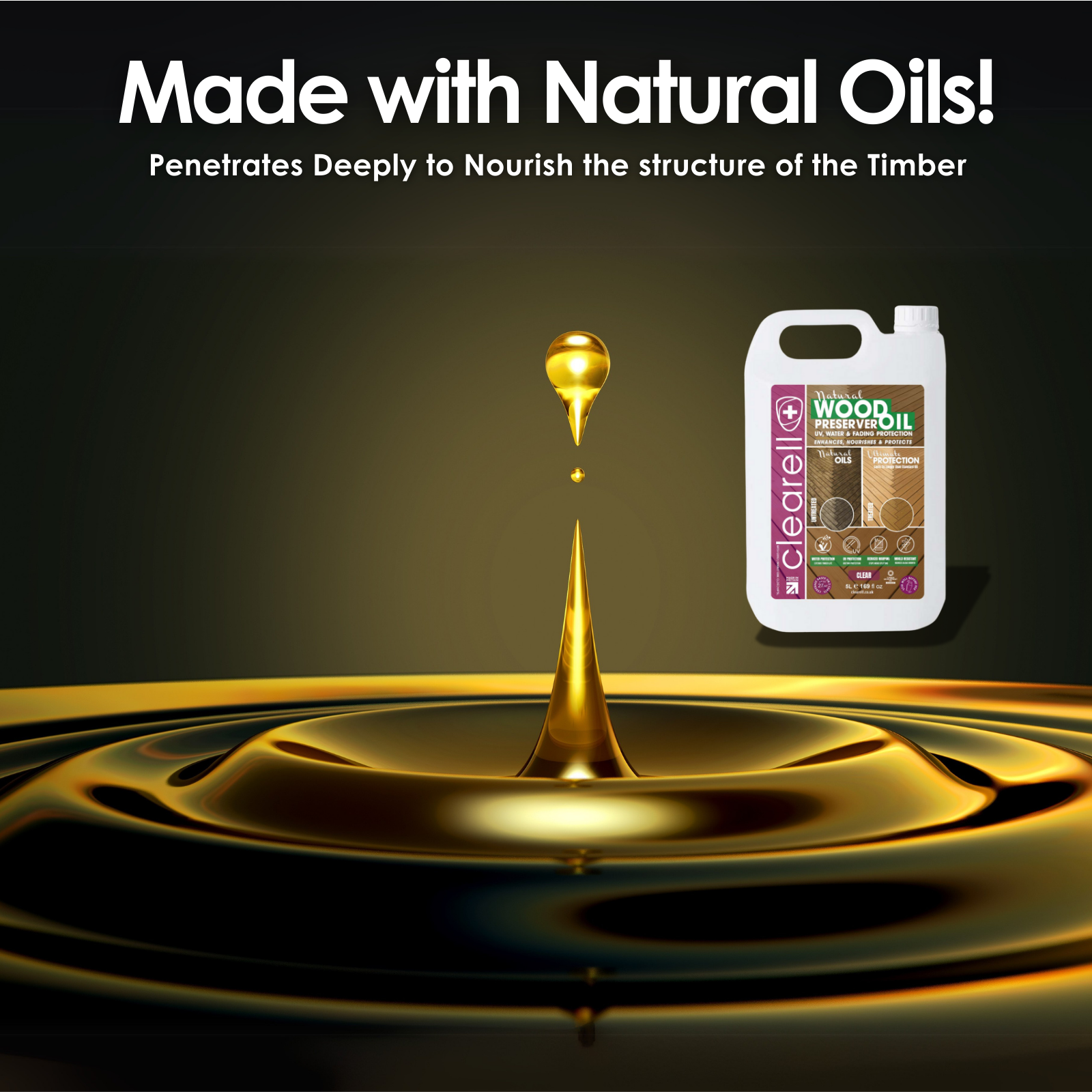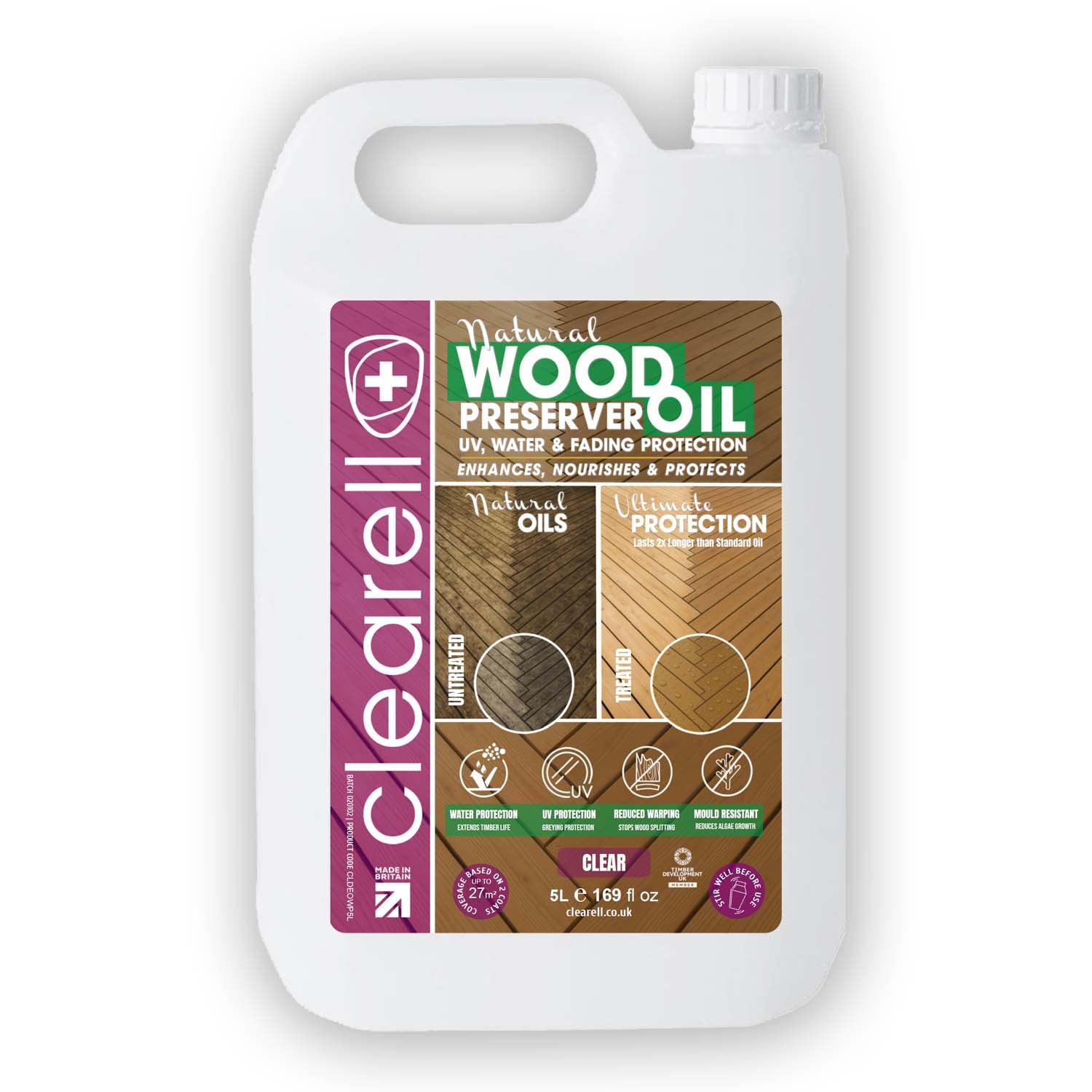 Clearell 5L - 100L | WOOD PRESERVER OIL | Clear – Water, UV, Mould Protection for All Outdoor Wood - Natural Oil Sealer & Preserver for All Cedar, Decking, Fences, Sheds & Furniture in litres