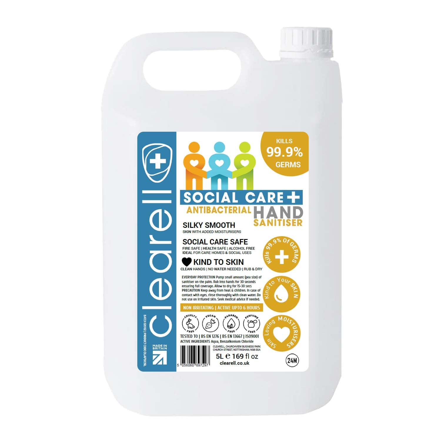 Clearell 5L | HAND SANITISER | SOCIAL CARE | Kills 99.9% Alcohol Free GEL 5 Litres